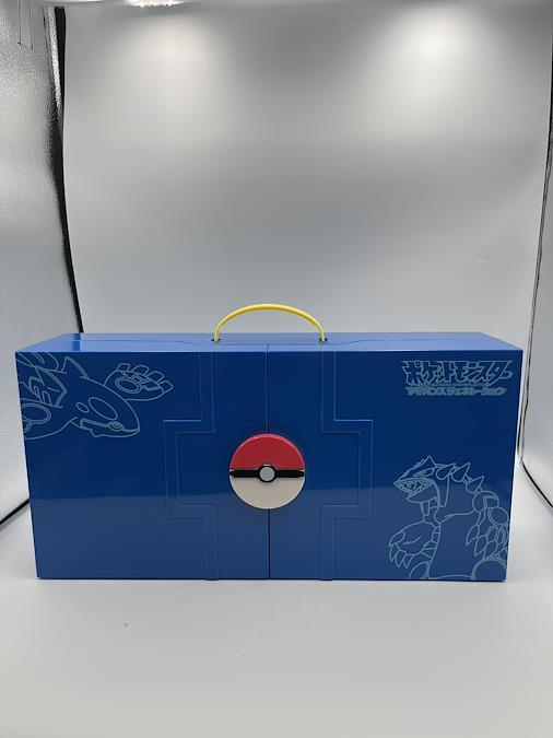 ポケットモンスター アドバンスジェネレーションの「モンスターコレクション(モンコレ)」収納ケースです。ケースの表面には、伝説のポケモン「カイオーガ」と「グラードン」が描かれており、中央にはモンスターボール型の留め具がデザインされています。