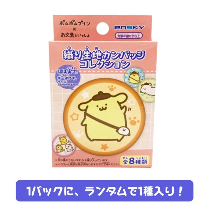 ・ポムポムプリン×お文具といっしょ 織り生地カンバッジコレクション×1パック
