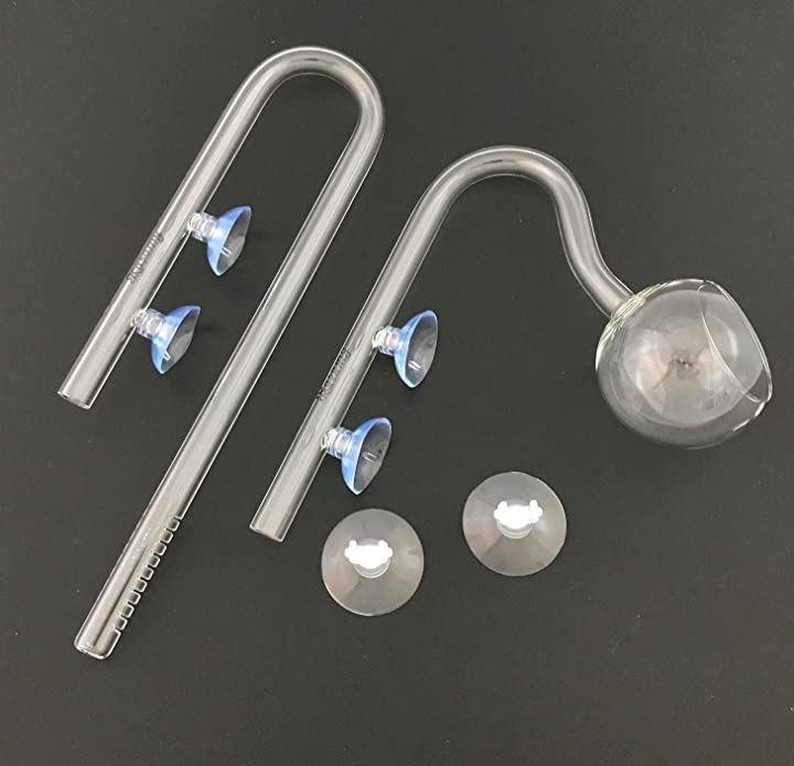 水槽用クリアガラスパイプポピー型出水パイプと吸水パイプとクリップ式吸盤の3点セット商品です。