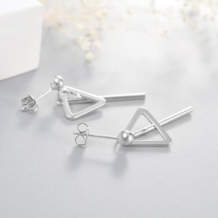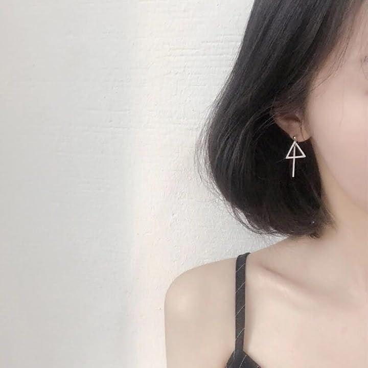 ピアス レディース 人気 垂れ下がり *デザインは、モダンな三角形モチーフが特徴の垂れ下がりタイプのピアスです。