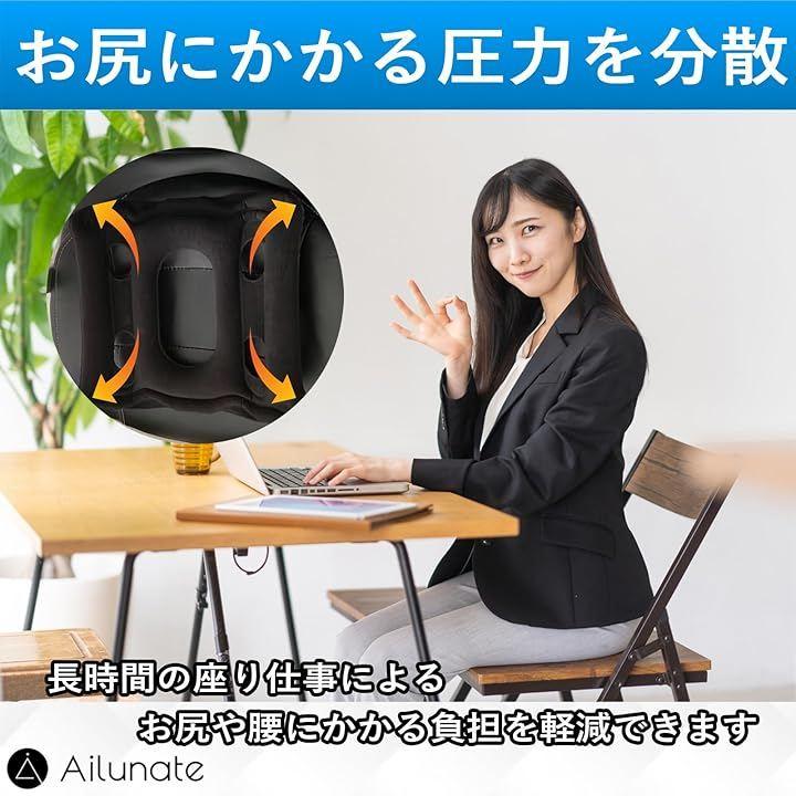 「快適な座り心地」このエアークッションは長時間のデスクワークや飛行機フライトでの身体の負担を軽減します。
