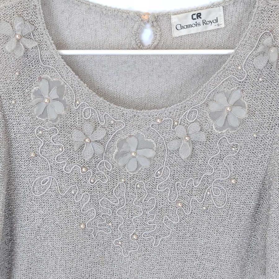 [ブランド] Chamois Royal シャミーロイヤル[タイプ] ニット 刺繍 花 ブラウス サイズ9[対象] レディース[身幅] 約44cm[着丈] 約45.5cm[状態] 花の装飾を留めている糸がほどけている箇所がございます。また、多少の使用感があります。
