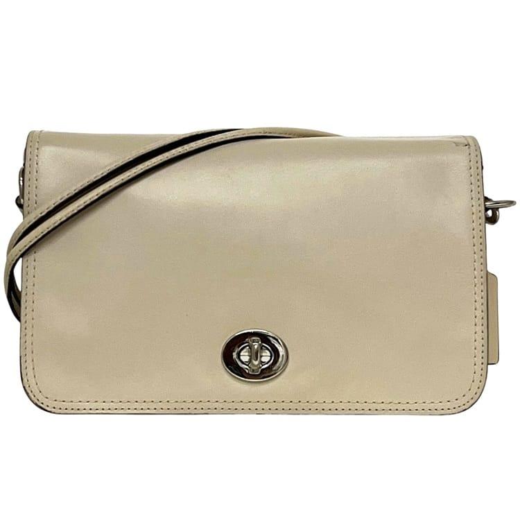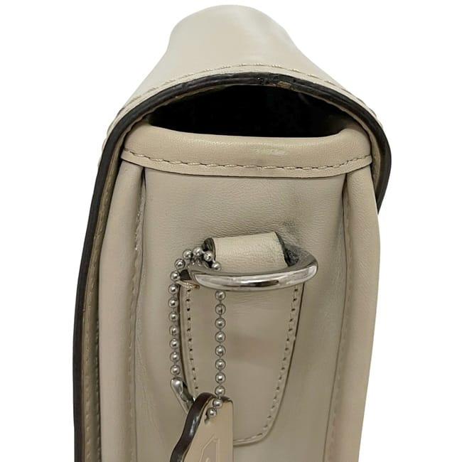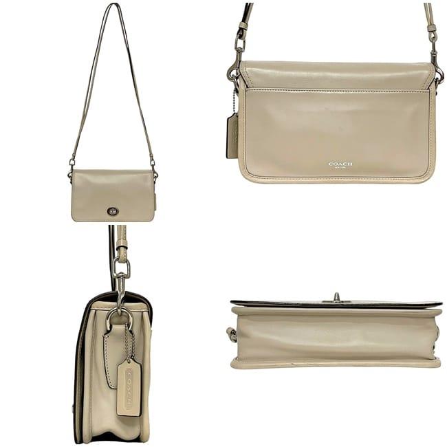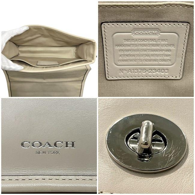 ☆---- 商品について ----☆コーチ ショルダーバッグ ec-24505 ベージュ グレー 23403 クロスボディ レザー 中古 COACH ターンロック 白 チャーム付 フラップ 斜め掛け グレージュ シンプル レディース 女性 定番 人気 革バッグ 肩掛け シルバー金具 ロゴチャーム ブランド 本物 鑑定済み