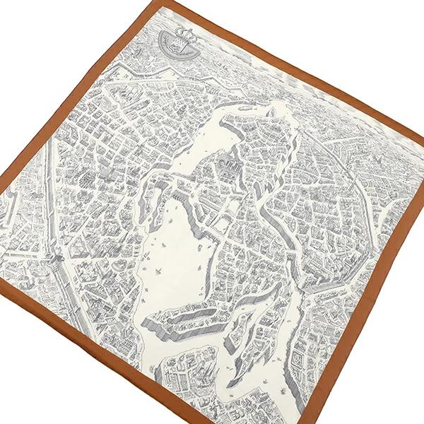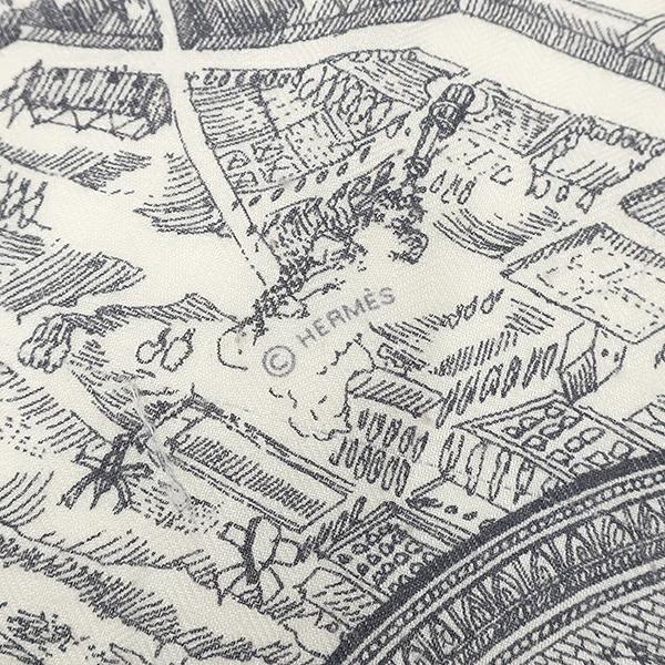 エルメス HERMES ショール カレ140 CARRE カレジェアン カレ140 ストール カシミヤ シルク キャラメル×ブラン×グリ 【 La cite Cavaliere /シテ カヴァリエール】 2019AW - レディース定番 人気 美品 【中古】