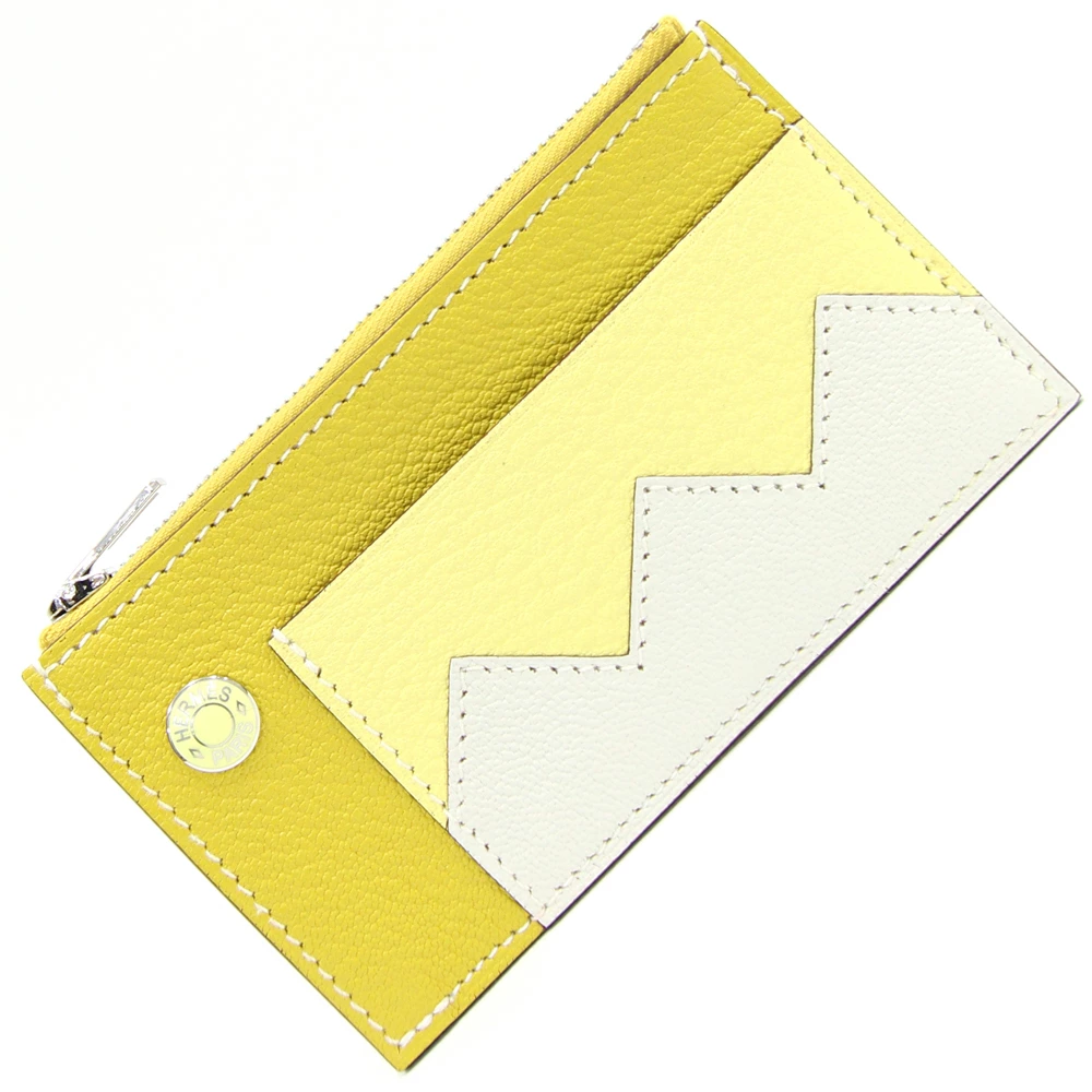 Pre-owned Hermès crocodile card case, compact card holder, yellow and white Chevre Mysore, coin purse, mini wallet, pouch, women's.