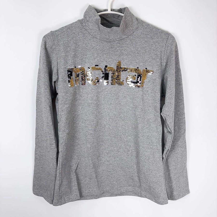 [ブランド] MONTAR モンター[タイプ] JOAN スパンコール ロゴ ハイネック ストレッチ ロングスリーブ ライディング シャツ[表記サイズ] S[対象] レディース[カラー] グレー[身幅] 約44cm[着丈] 約58cm[状態] 未使用品ですが、正面に汚れがみられます。