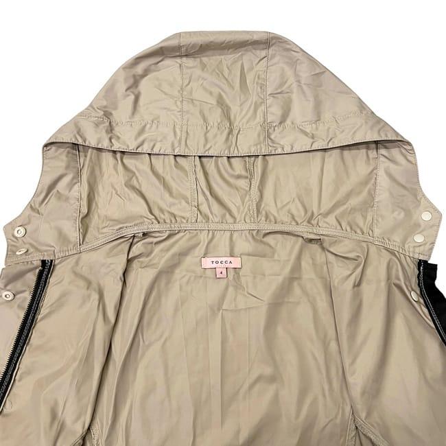 ☆---- 商品について ----☆トッカ コート ec-24545 ベージュ 美品 4 11号 ナイロン ポリエステル 100% 中古 TOCCA アウター 薄手 リボンコート ロング フード付き レディース 定番 人気 シンプル 保存袋付き コンパクト 上着 ファスナー ワンカラー 長袖 アパレル ブランド 本物 鑑定済