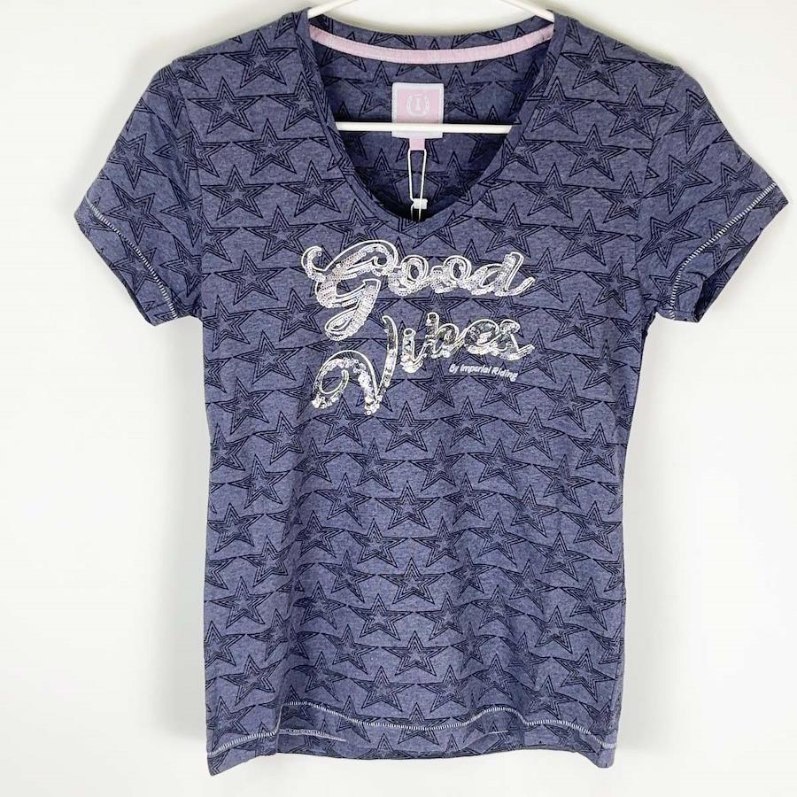 [ブランド] インペリアルライディング IMPERIAL RIDING[タイプ] Good Vibes ストレッチ 半袖 ライディング Tシャツ[表記サイズ] S[対象] レディース[型番] KL35118008[カラー] ネイビー[身幅] 約40cm[着丈] 約57cm[状態] 未使用品