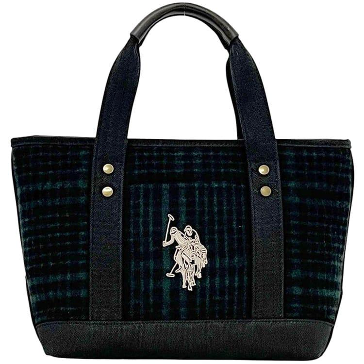☆---- 商品について ----☆ユーエス ポロ トートバッグ ec-24449 ブラック グリーン 美品 コットンキャンバス 中古 US POLO ミニバッグ ハンドバッグ ロゴ 刺繍 チェック柄 黒 軽い メンズ レディース 男女兼用 ワンポイント キャンバスバッグ 定番 人気 ブランド 本物 鑑定済み