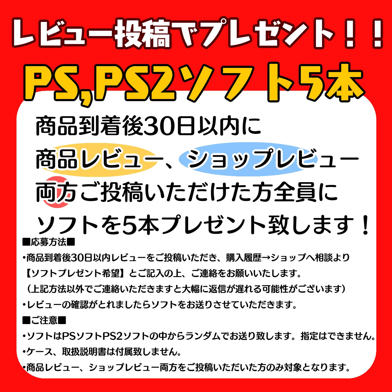 | 商品状態 | ★すぐ遊べるセット★ 【内容物】※画像はイメージです ■本体(キズあり) ※型番はお選び頂けません。SCPH10000〜SCPH-39000のいずれかをお送りいたします。 ■電源ケーブル ■純正コントローラー(デュアルショック2/ブラック) ■AVケーブル ※箱・説明書等、記載のない物は欠品しております。 動作確認済み。 綺麗なエアキャップでの包装でお送りします。 当社ではすり替え防止のため商品の写真、シリアルナンバーを控えて管理しております。 ★★レビュー投稿キャンペーン実施中★★ 商品レビュー、ショップレビューをしていただいた方全員に PS,PS2ソフト5本漏れなくプレゼント!! ※ケース無しの裸ソフトとなります。 ご了承くださいませ。 応募方法を確認 |