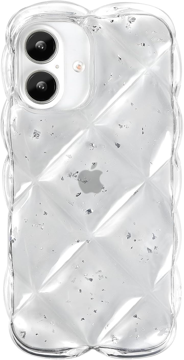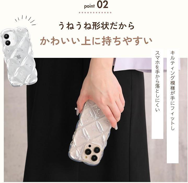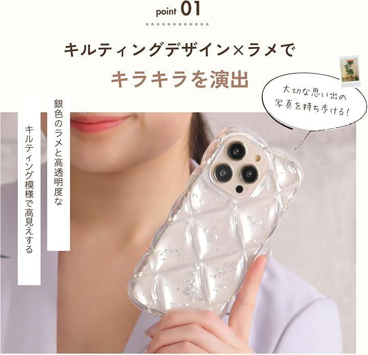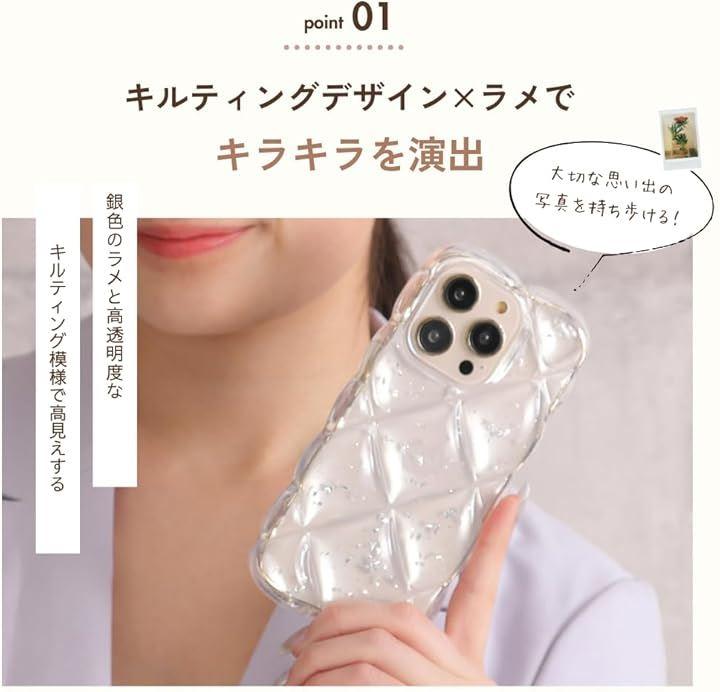 「キルティングデザイン」 うねうねとしたエッジとダイヤ柄のひし形凸凹加工、アルミ箔シルバーの装飾を施した、大人可愛いiPhone用クリアケースです。