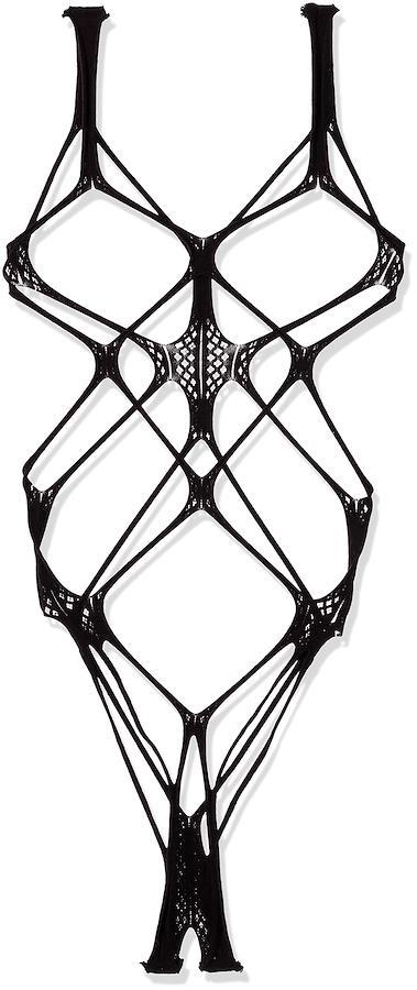 網目の小さい全身ボディータイツに比べ、ロープのように太めラインが特徴的。SMの縄のように見え、裸にタイトにフィットして、ボンテージ(拘束)感とすけ感が同時に楽しめるグッズです。