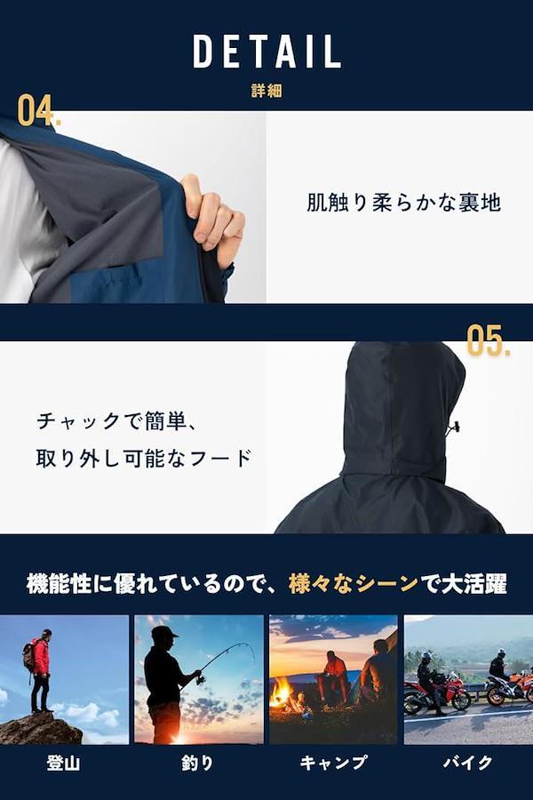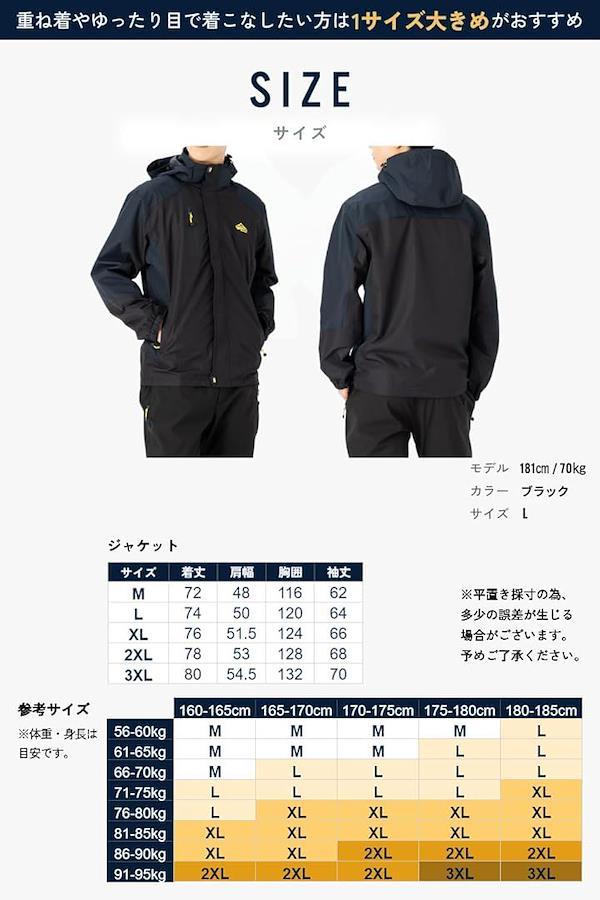 「利用シーン」登山、釣り、バイク、アウトドア、キャンプ、サイクリング、スポーツ、防災など 「機能」*ジャケット:撥水加工(耐水圧15,000mm)、防風、防寒 「カラー」ネイビー、ブラック、ブラウン、グリーン、レッド 「重量」ジャケット約520g 「メイン素材」ポリエステル 「サイズ」M~3XL 着丈 /肩幅/胸囲 /袖丈 [M] : 72 / 48 / 116 / 62 [L] : 74 / 50 / 120 / 64 [XL] :76 / 51.5 / 124 / 66 [2XL] :78 / 53 / 128 / 68 [3XL] :80 / 54.5 / 132 / 70