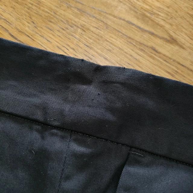 | 仕様 | フロント:ジップ ポケット:あり 透け感:ややあり 裾:ロックステッチ ウエスト調整:ゴム(紐なし) 裏地:なし |