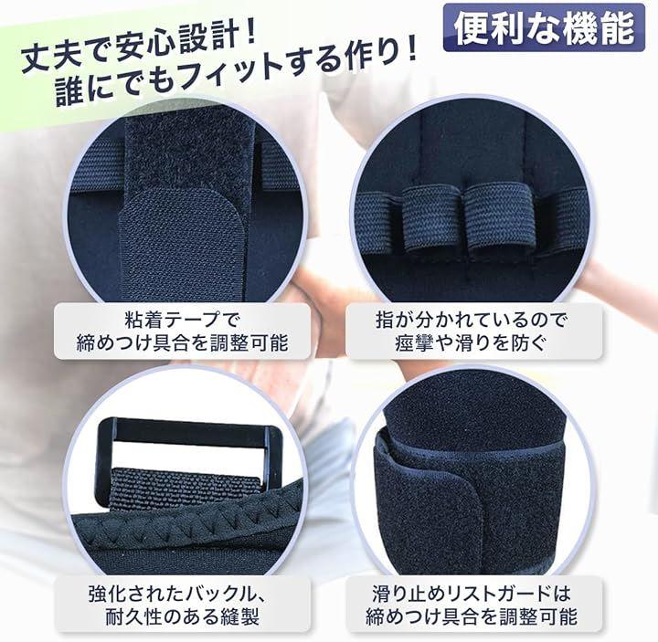「肌にやさしい高品質素材で長時間も快適」 滑り止めリストガードとテープにより、個人の手の形や好みに合わせて締め付け具合を調整でき、適度なホールド感を実現します。
