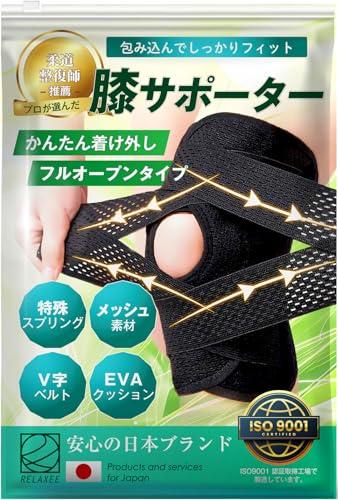 ?【サポート力と快適性を両立】サポーターを使用することで、筋肉や靭帯、腱の部位をサポートし、身体の自然な動きをサポートすることを目指します。 ?【EVAパッドでやさしくサポート】膝の皿の両側に配置された月形パッドが、膝関節へのサポートを提供し、使用時の快適性を目指します。 ?【V字ベルトでしっかりフィット】膝に巻くV型マジックテープを2本搭載し、膝の上下に交差させることで、膝周りのフィット感を高めた膝サポーターです。着用時の安定感を追求し、左右の動きに対するサポートを提供する設計となっています。 ?【特殊スプリングを両側に装備】膝サポーターには、両側にそれぞれ2本の特殊スプリングが内蔵されており、関節の動きに合わせてしっかりとサポートしてくれます。運動や活発な動作を行う際の着用に適しています。 ?【人間工学に基づいた設計】膝の曲げ伸ばしが多い部分には、快適な着用感を追求したカーブカット構造を採用しています。 ?【簡単&快適な着用感を追求】簡単に着け外しできるフルオープンタイプ。マジックテープ式なので、締め付けも簡単に調整することが可能です。また、メッシュ生地を使用しており、通気性に配慮した設計となっています。吸汗速乾性に優れ、汗をかいてもサラッと快適です。 ?【徹底した品質管理】RELAXEE膝サポーターはISO9001認証取得工場で製造されております。お客様に安心して商品をご使用頂く為、徹底した品質管理の下で製造・検品させて頂いております。 ?【安心の日本ブランド】購入後のサポートも日本人が丁寧に対応致します。サイズ交換も承っておりますので、お気軽にご相談下さい。