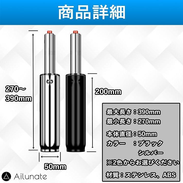 商品詳細:最長39cm~最短27cmの高さ調整が可能です(ご注文前に、お手持ちのチェアとガスシリンダーの寸法をご確認ください)。