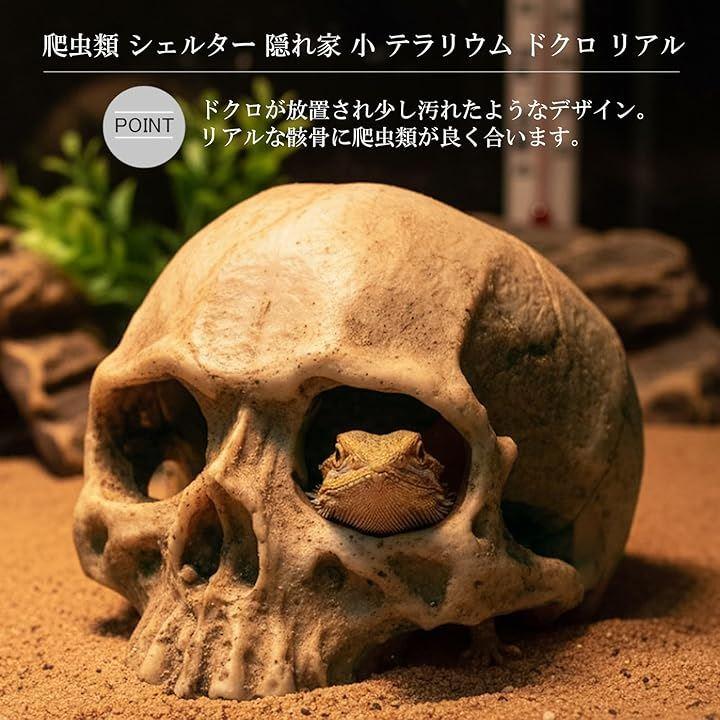テラリウムを彩る爬虫類用品スカル(ドクロ)のおしゃれな隠れ家シェルター。 テラリウムや水槽やケージに、ユニークなアクセントを加えてみませんか?このリアルなドクロ(骸骨)のオブジェは、トカゲなどの爬虫類の飼育環境を格上げするだけでなく、彼らがホッとして過ごせる隠れ家やシェルターとして機能します。