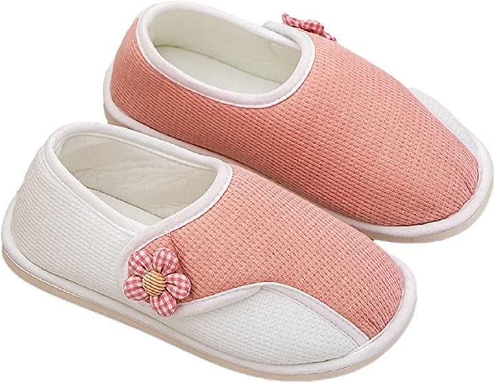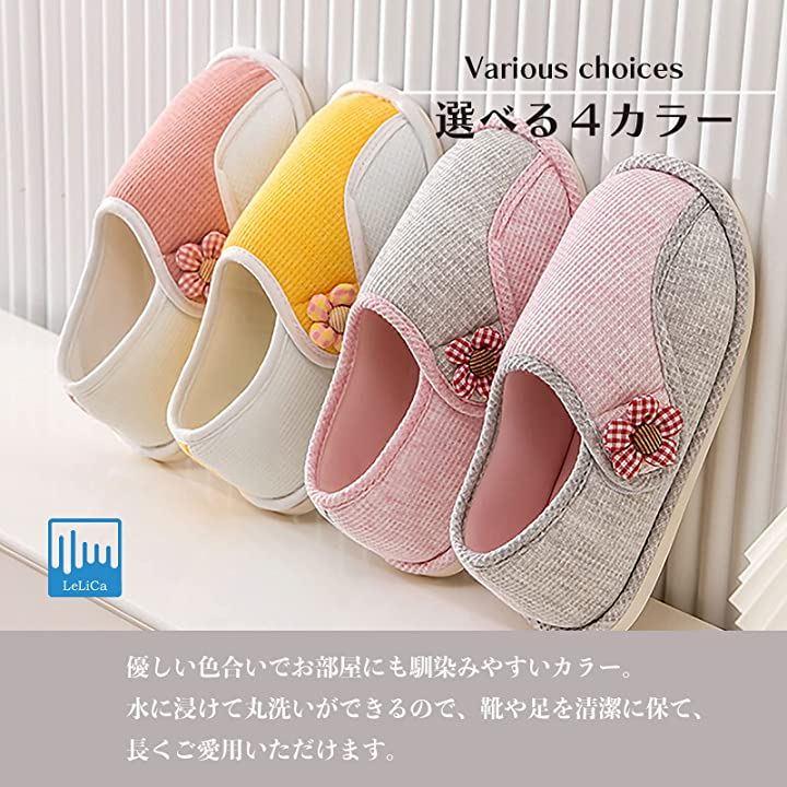 ・「デザイン」ワンポイントのフラワーを飾り、かかとあり・つま先ありのテープ付き室内用スリッパ(滑り止め付き)。