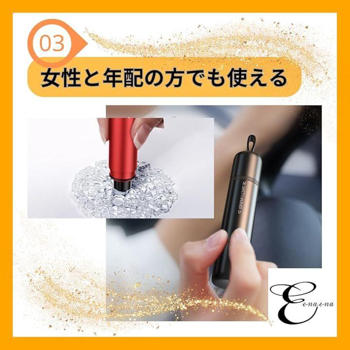 「女性と年配の方でも使える・水中&陸上兼用」 脱出用ハンマーの重量はわずか40gで、女性や年配の方でも使えます。