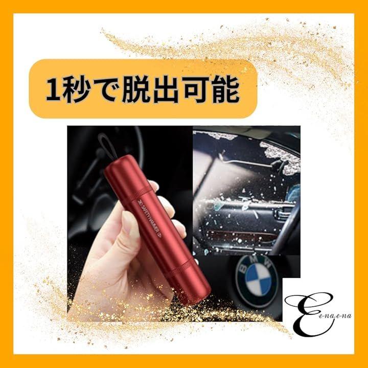 「シートベルトカッター付き」 シートベルトカッターはスチール製で、シートベルトを簡単にカットでき、万が一の時に素早く危険から脱出できます。