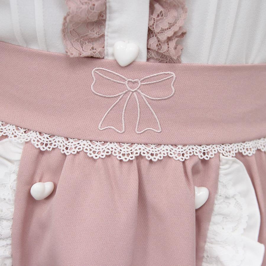 リボン刺繍がポイントのフリルたっぷりギャザースカートのご紹介【デザイン】前ウエストにリボンの刺?が付いた仕様になっております。切り替え部分にはフリルの上からレースを重なっております。裾にはリボンがついたはしごレースを使用し、可愛さがさらにアップしております。後ろにゴムがあり、多少の伸び縮みが可能です。また脇ファスナーになっておりますので着脱もしやすいです。【素材】しっかりとした素材になっています。本体に裏地付き、脇ポケット付きです。脇ファスナー、後ウエストゴム付きです。【コーディネート】量産型、地雷系コーデにオススメのかわいいブラウスです。はしごレースフリルブラウスに合わせて頂くのもオススメです。《透け感》なし 《生地の厚さ》普通 《裏地》あり 《伸縮性》ややあり《生産国》中国