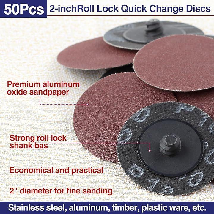 「セット内容」50本 x #180 ロールロック サンディングディスク。