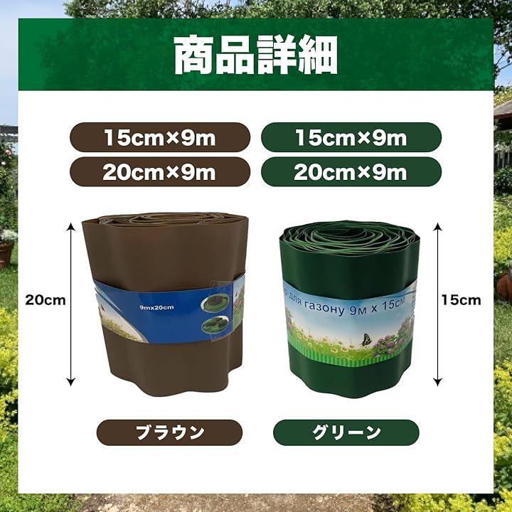 グリーン 15cmx9m 「カラー」グリーン「サイズ」高さ15cm、長さ9m「材質」ポリエチレン
