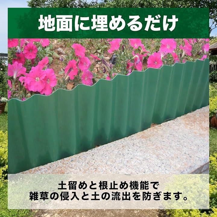 このシートは、花壇や園芸エリアにしっかりと設置することで、植物の根の広がりを防ぎ、周囲を整然と保つ根止め効果を発揮します。