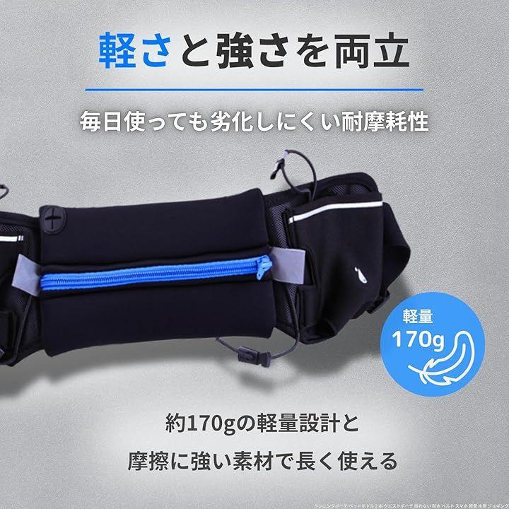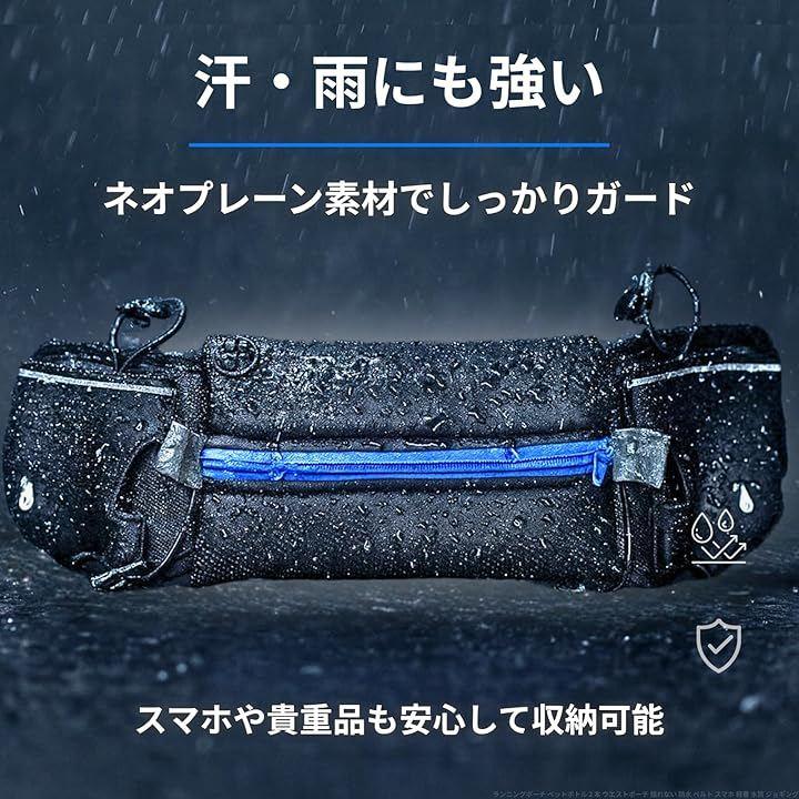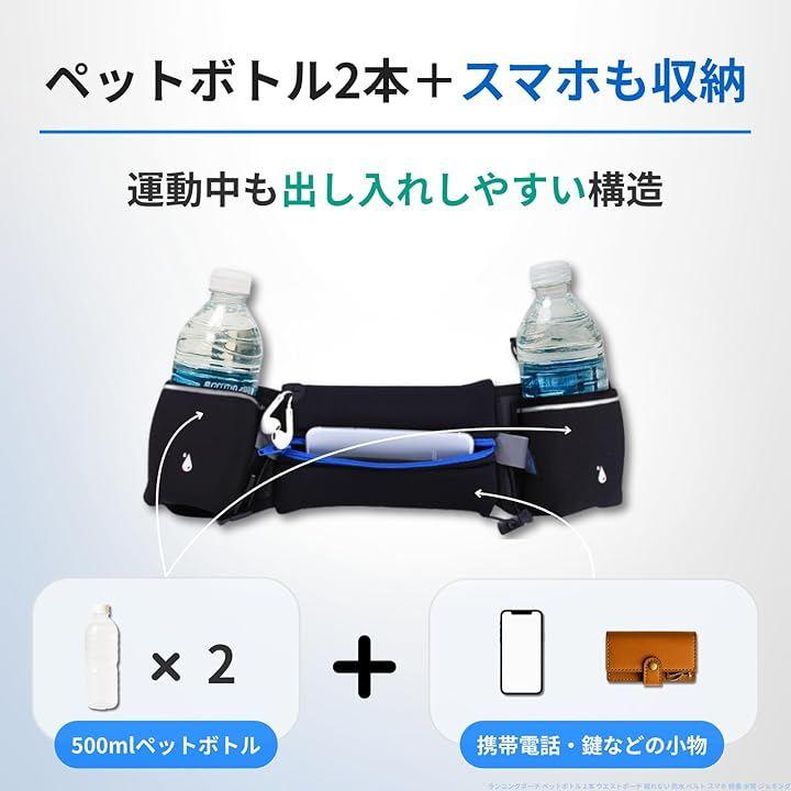「ペットボトル2本収納」 長距離を走るランニングポーチにぴったりの2本のペットボトルを収納できる小型ポーチです。