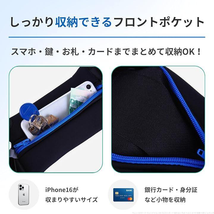 「スマホも音楽も快適に携帯」 中央のメインポケットは、スマホやジョギングに必要な小物類を収納するのに適したサイズ設計です。
