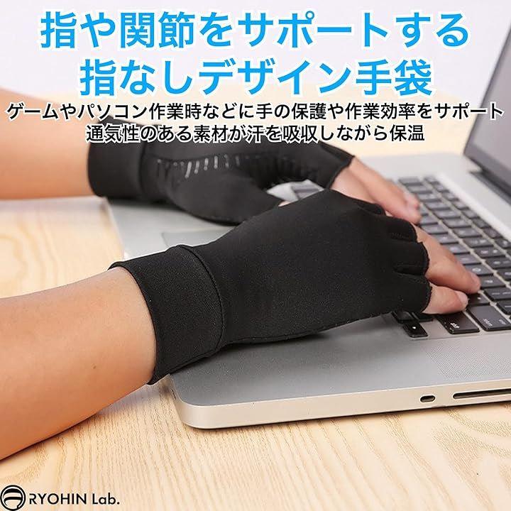 「指や関節をサポートする指なしデザイン手袋」ゲームやパソコン作業時などに手の保護や作業効率をサポートします。