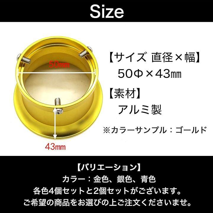 「サイズ 直径x幅」50Φx43mm 「バリエーション」金色x4個セット 銀色x4個セット 青色x4個セット 金色x2個セット 銀色x2個セット 青色x2個セット 「素材」アルミ製