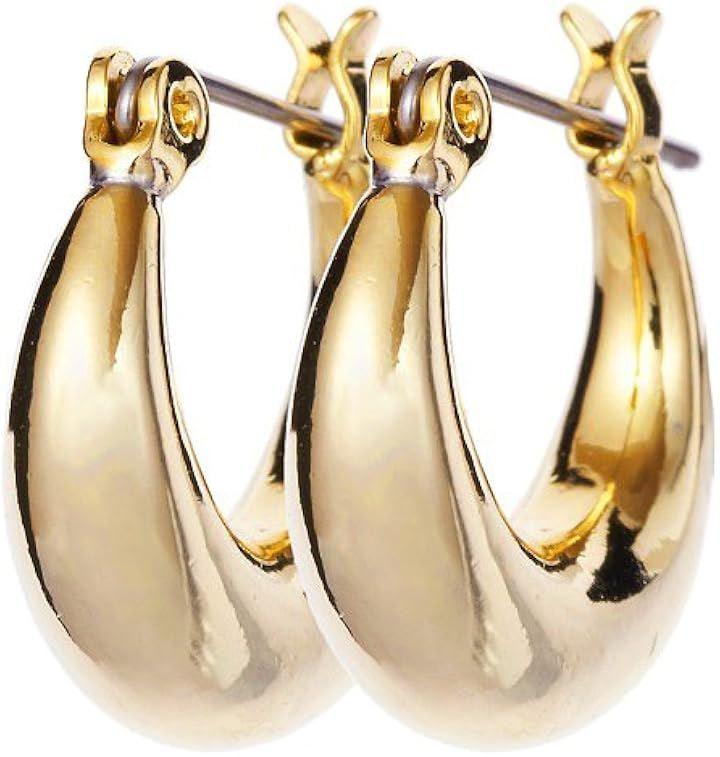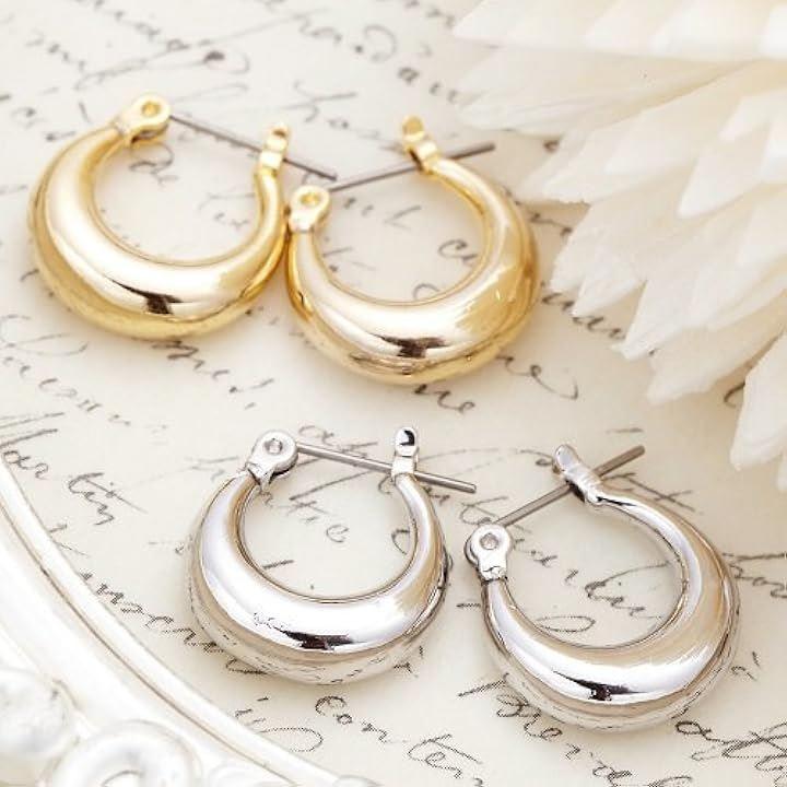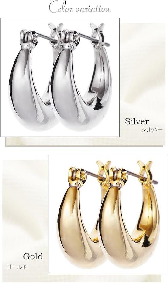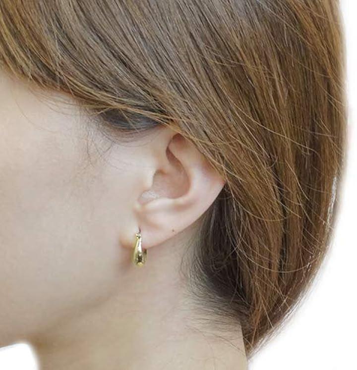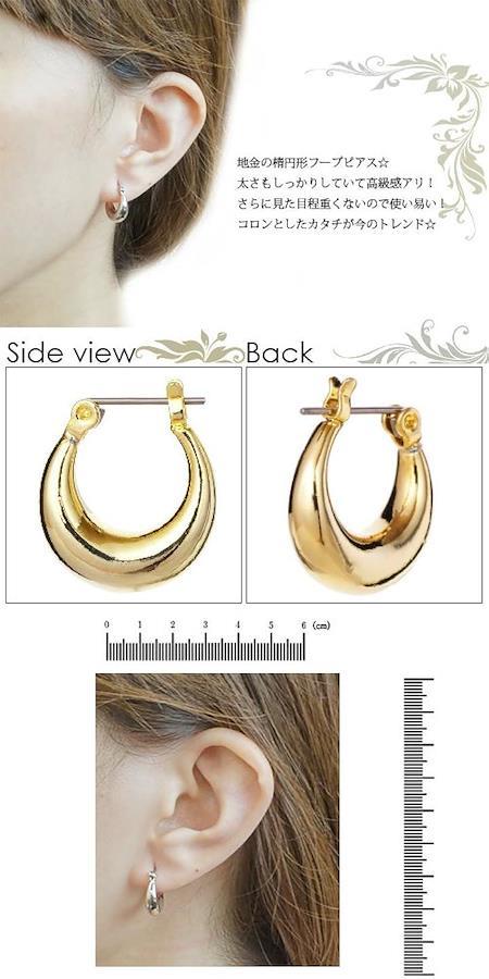 地金の楕円形フープピアス