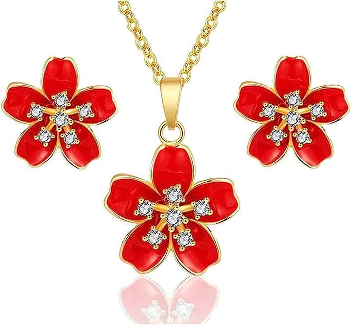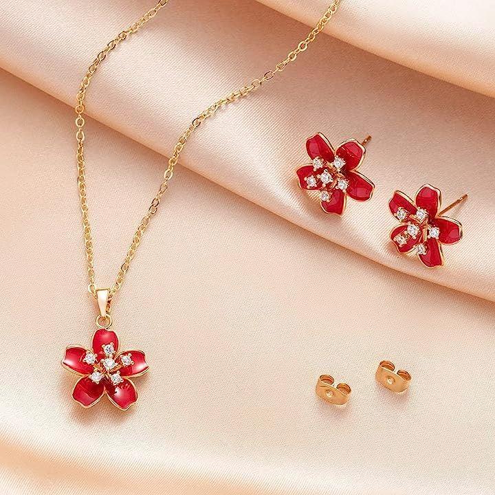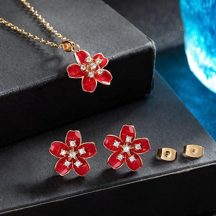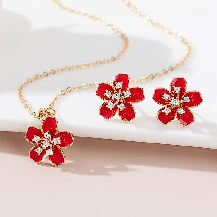 桜のピアスとネックレスセットは見事な工芸で作られました。