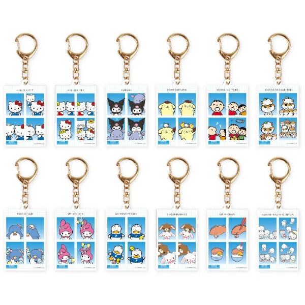 サンリオキャラクターズの証明写真風キーホルダーBOXセットです。全12種類あるのでお好きなキャラクターをお友達と分け合うのも◎SNSで話題の証明写真風デザインがアクリルキーホルダーになっちゃいました!ぜひバッグやポーチにお気に入りのキャラクターをつけてお楽しみください♪
