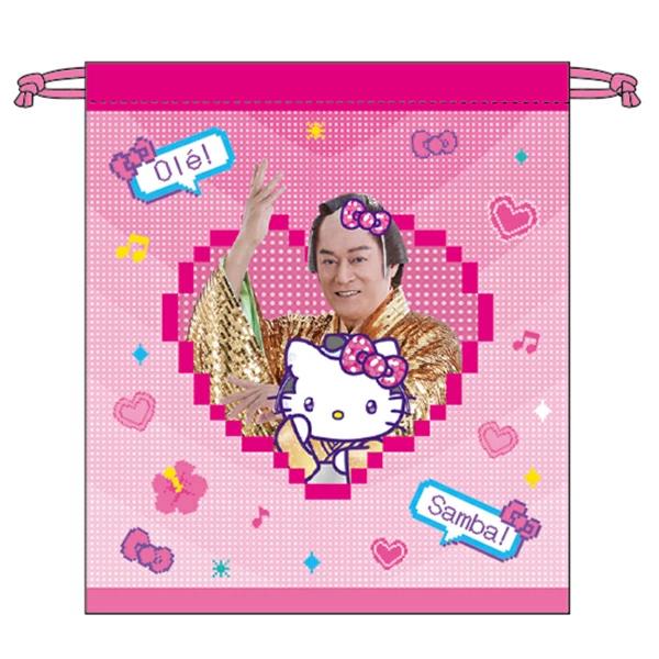 大人気のマツケンとハローキティの夢のコラボです。小物や化粧品等を入れられる程よい大きさの巾着です。デザイン入りの台紙付きで嬉しい♪