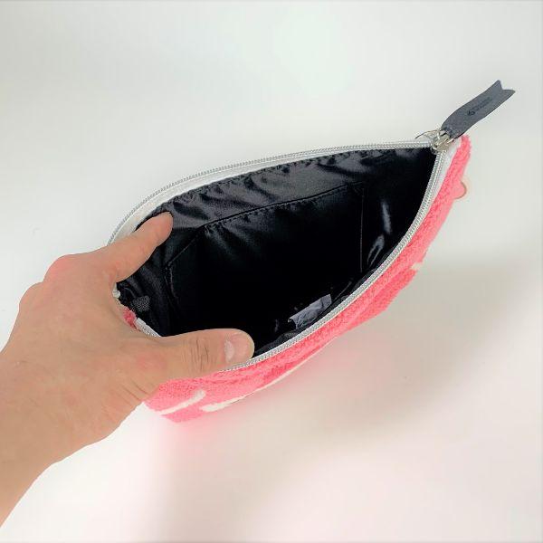 沢山の方々に愛されているキャラクターの『マイメロディ』がサガラポーチになって登場!お顔が大きくプリントされていて見た目もバッチリ◎普通のポーチよりも大きくて薄い形なので、母子手帳やお薬手帳などもすっぽり入りますね。そのまま持てばクラッチバッグとしても大活躍!すごくしっかりとした素材なので、丈夫で長持ちなのも嬉しいポイントですね☆内側にポケットも付いているので、小物も収納できます。プレゼントにもいいですね♪