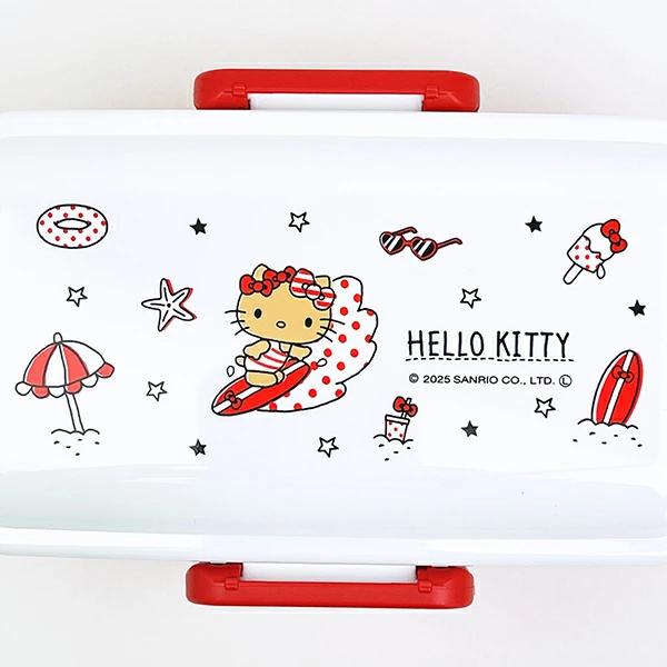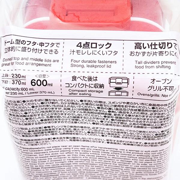 ランチボックスです。ドーム型のフタのため。ご飯をふわっと盛れるので美味しさUP! 高い仕切りでおかずも片寄らず、4点ロックで汁も漏れにくい☆彡 食べた後はコンパクトに収納可能です。箸セットとお揃いデザインで揃えたくなる可愛さ☆彡ご飯とおかずを完全に分けたい方はこちら! キティちゃん好きにはたまらない品になってます!! 食洗機・電子レンジ使用可◎【容量:600ml(上段230ml、下段370ml)】