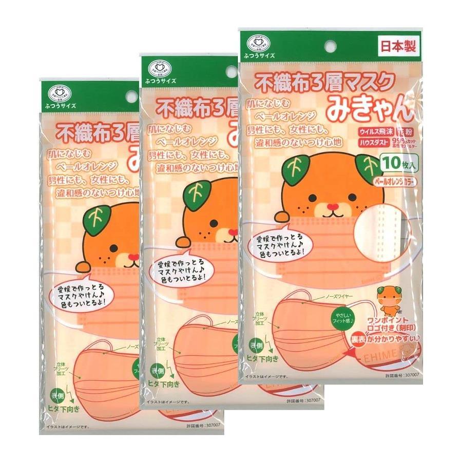 愛媛県の自社工場クリーンルームにて製造・梱包を行っています。 愛媛県のイメージキャラクター「みきゃん」の可愛いワンポイント刻印入りマスクが お肌に馴染み、血色が良く見えるペールオレンジカラーで登場しました。 袋入りなのでカバンにポン!っと携帯にも便利。 いつでも「みきゃん」と一緒です。 いつでも持ち歩いて、 ぱっと取り出し、 さっと使える!! ◎呼吸がしやすい 高性能不織布3層フィルターを立体プリーツ加工 ◎隙間をつくらない 軽く押さえるだけで鼻にフィットする形状保持力の高いノーズワイヤー ◎ソフトタイプの耳掛け紐で耳が痛くなりにくい だから・・・優しい着け心地とフィット感のあるマスクになっています。 一般財団法人カケンテストセンターによる検査にて BFE(バクテリア濾過効率)、VFE(ウイルス濾過効率)、PFE(微粒子の捕集効率) 全て99%カット。高性能不織布マスク。 サイズは標準的な 175×95mm 仕上げ。 高機能・高品質のマスク、安心の日本製マスクをお手頃価格でお届け。 愛媛のまじめなマスクです。 ※当店は「日衛連 全国マスク工業会」の会員です。