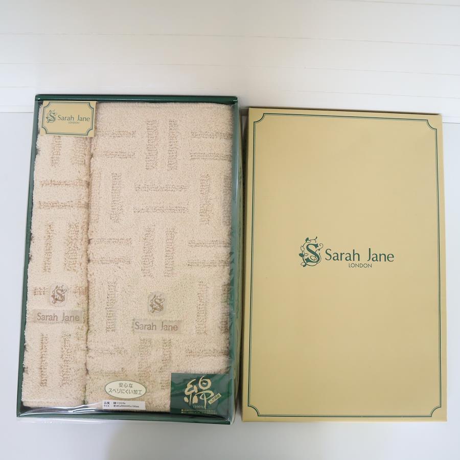 【詳細】■ 商品名・モデル:Sarah Jane キッチンマット&バスマット セット■ ブランド:Sarah Jane■ カラー:ベージュ■ サイズ:- バスマット:約45×60cm- キッチンマット:約45×180cm■ 素材:綿100%■ 状態:- 傷・汚れ:外箱に潰れダメージあり。マット本体は未使用で目立つ汚れなし。- 使用感:未使用品■ 付属品:化粧箱(ダメージあり)