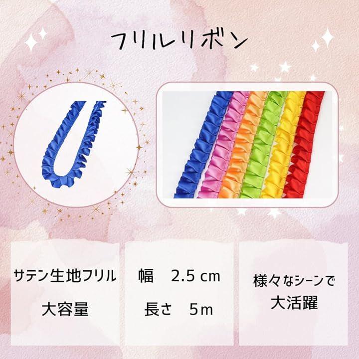 長さ5メートルの大容量でたっぷり使えるので、複数の作品づくりにもお得なフリルリボンです。
