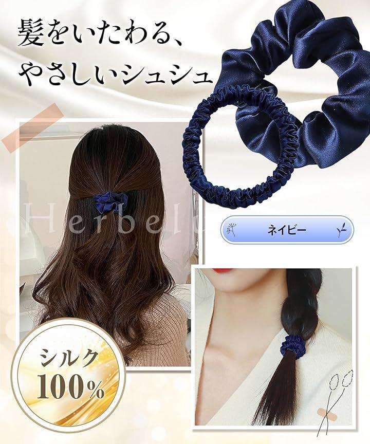 「髪をいたわる、やさしいシュシュ 」天然シルク素材を使用した髪にやさしいシルクシュシュです。