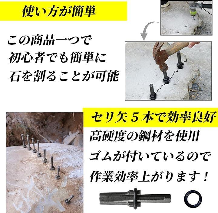 セリ矢16 mmとSDSプラスシャンクの4枚刃ドリルビットを同梱し、ハンマードリルや18 V充電式ドリルに装着して穴を開け、くさびを差し込みハンマーで叩くだけで岩・庭石・擁壁をスパッと解体できます。
