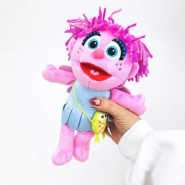 セサミストリートの人気キャラクター、アビーは妖精の女の子♪ふわふわのボディが気持ちいいぬいぐるみは、大好きな「カエルのプリンス」のポシェットがかわいいポイントです◎