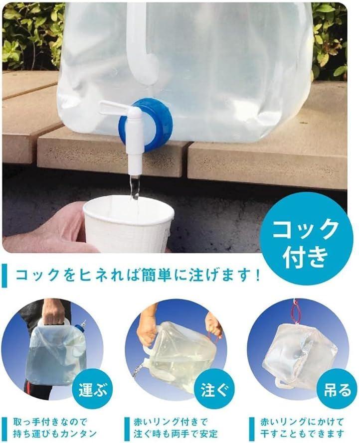 災害時、アウトドア、キャンプ、自宅用の貯水用、ピクニック、野外活動など、 使用用途も多様で簡単に使えるので、水道が近くにないシーンで活躍します。