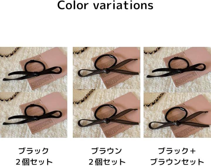 「上品で大人可愛い。PUレザー製リボンヘアゴム」上品で大人可愛い雰囲気を演出するPUレザー製リボンヘアゴム。