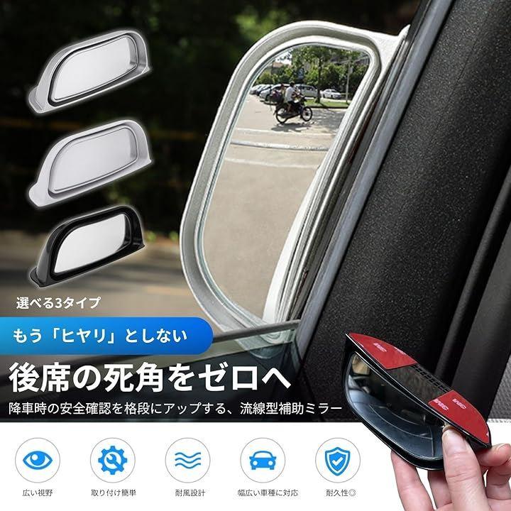 「死角ゼロを目指す新設計ミラー|視界拡大で安心ドライブ」 サイドミラーでは見えにくい“後席の死角”をしっかりカバーする補助ミラー。