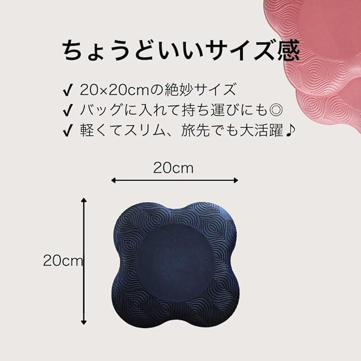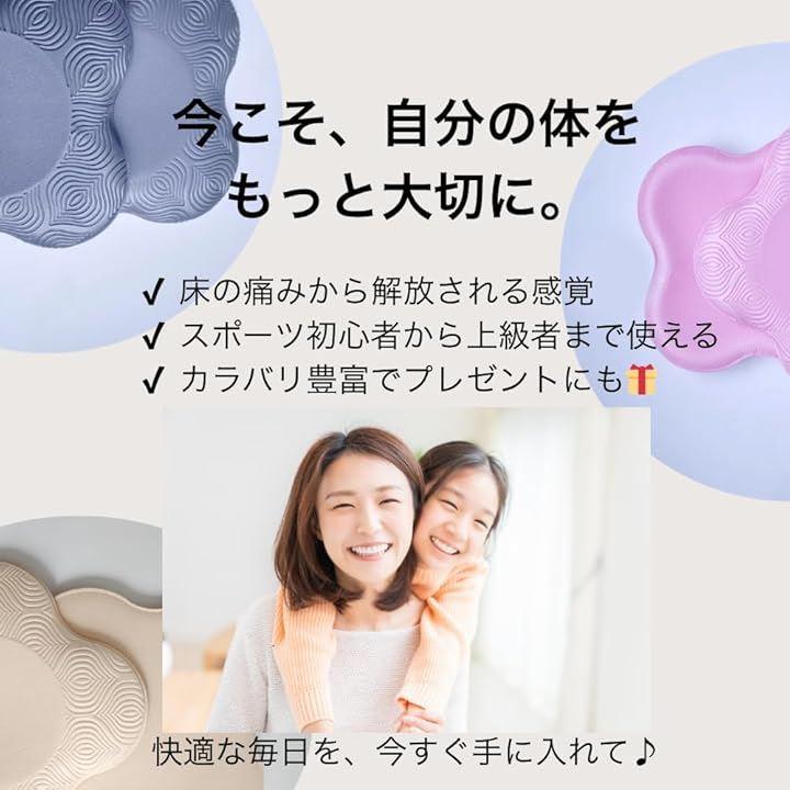 「膝や肘を守るクッションマット」 ヨガや筋トレ、ストレッチなどで膝や肘が床につく動作時の衝撃を吸収し、身体への負担を軽減します。