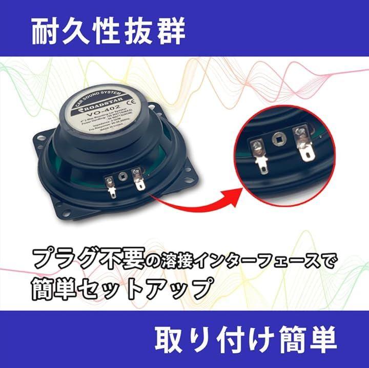 「商品詳細」内容:車用スピーカー2個 音声感度:90dB、インピーダンス:4Ω、周波数範囲 (Hz):90Hz-20000Hz、出力:50W-150W、電圧:12v-24v